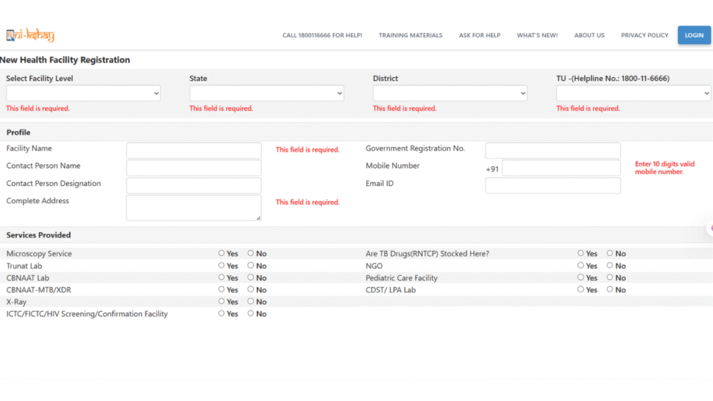 इस सेक्शन में दिए गए New Health Facility Registration विकल्प पर क्लिक करें।