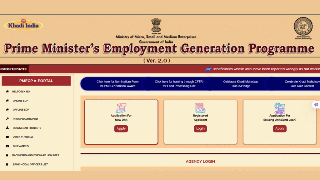 होमपेज पर आपको PMEGP ePortal का विकल्प दिखाई देगा, उस पर क्लिक करें।