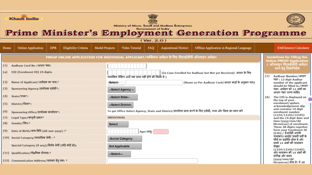 अब आपके सामने PMEGP Online Application Form 2026 खुल जाएगा।